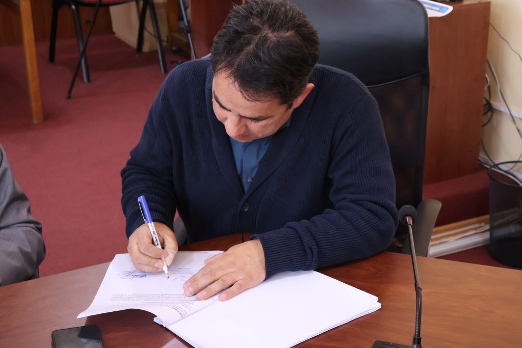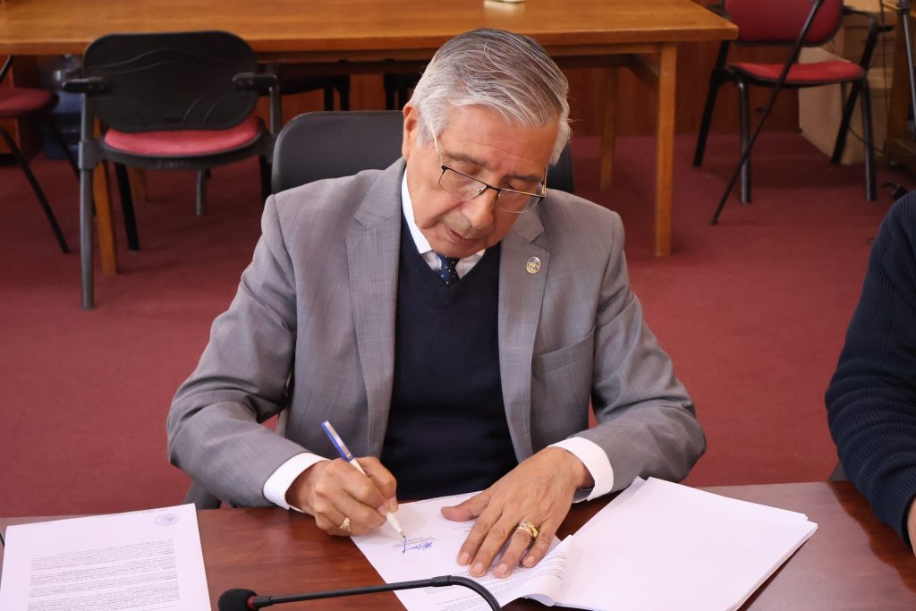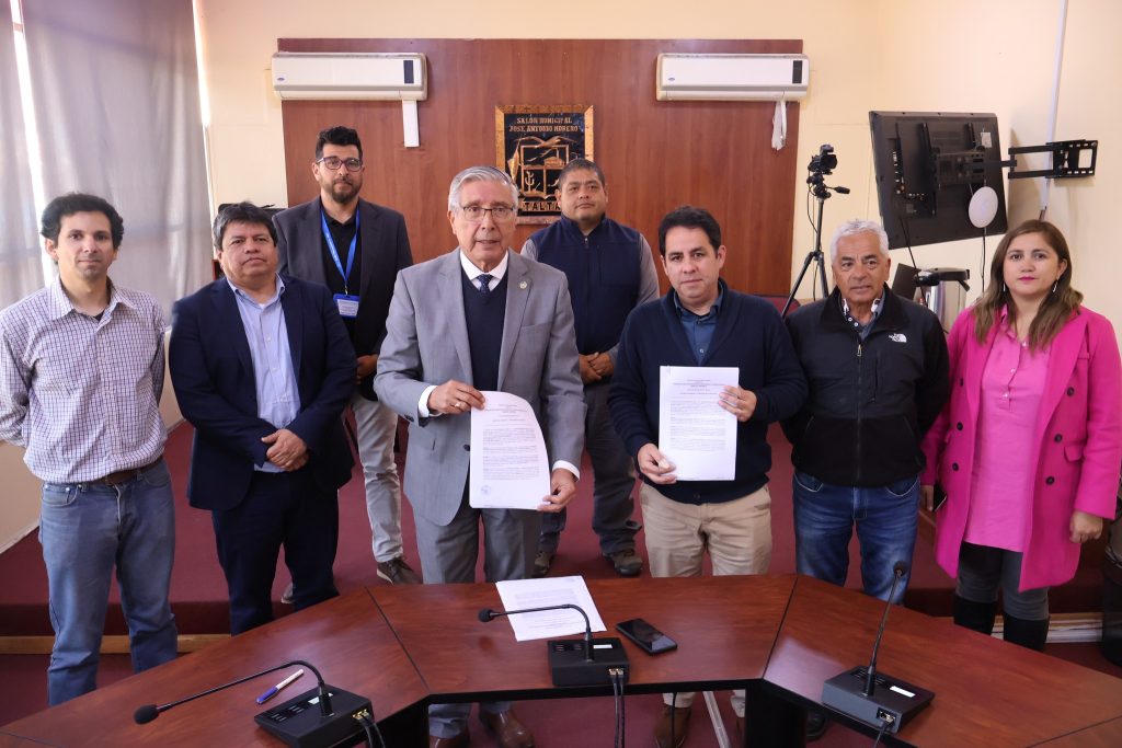 El acto, realizado en la Sala de Concejo Municipal, contó con la participación del alcalde Guillermo Hidalgo, su equipo municipal, y representantes de la empresa adjudicataria del proyecto, Sistemas de Seguridad y Tecnología (SISTESA) SPA, encabezados por su representante Ladislau Revesz.